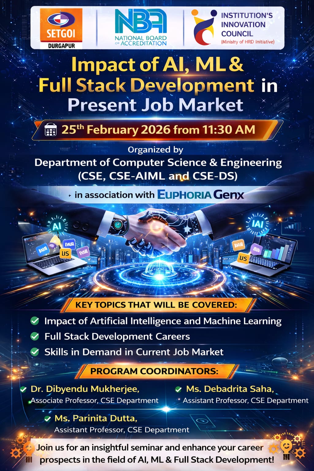 Bachelor of Technology (B.Tech) in Computer Science & Engineering (CSE) is a highly demanding career choice among engineering aspirants.Computer Science & Engineering encompasses a variety of areas that includes computation, like analysis of algorithms, programming languages, program design, software, Artificial Intelligence & Robotics, computer hardware etc. Computer Science engineering has roots in electrical engineering, mathematics, and linguistics. In the past Computer Science was taught as part of mathematics or engineering departments and in the recent days it has emerged as a separate engineering field.